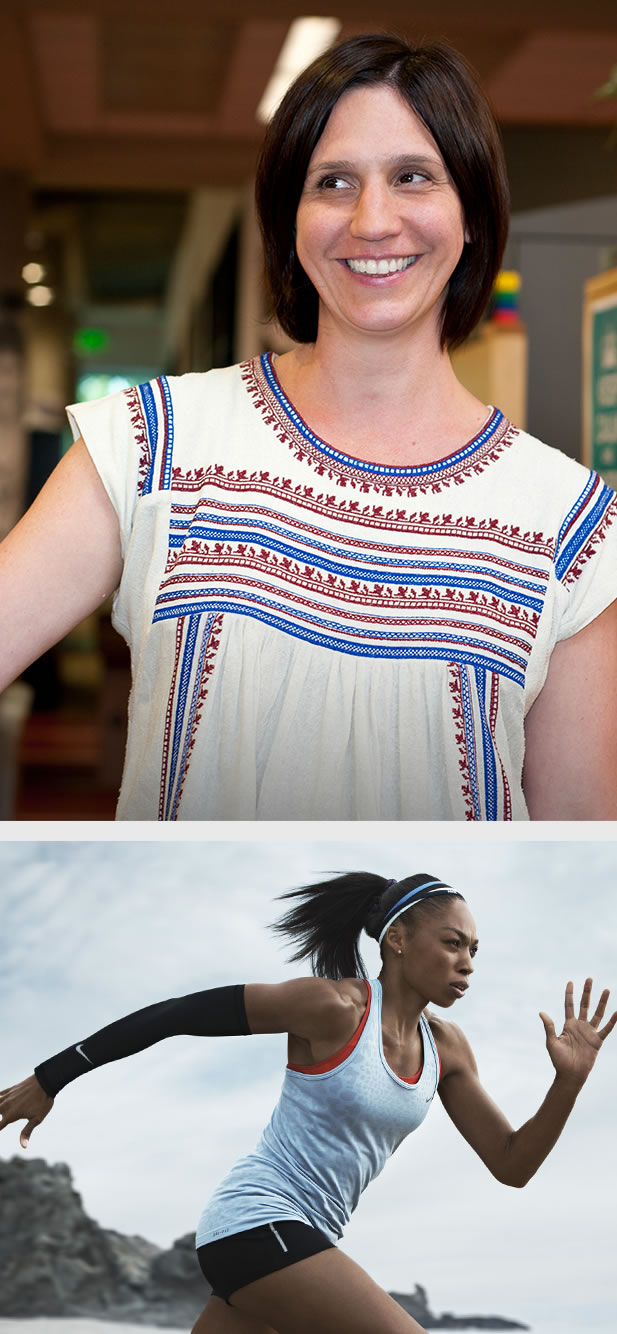 “One of the things that I’m the most excited about is the brand team’s support behind Dri-FIT Knit in Fall 2013,” Wilcox says. “Fall 2013 is the first season where Dri-FIT Knit shows up cross-category with running, women’s training and men’s training, and Brand’s creative work with athletes Ashton Eaton and Allyson Felix is fantastic.”