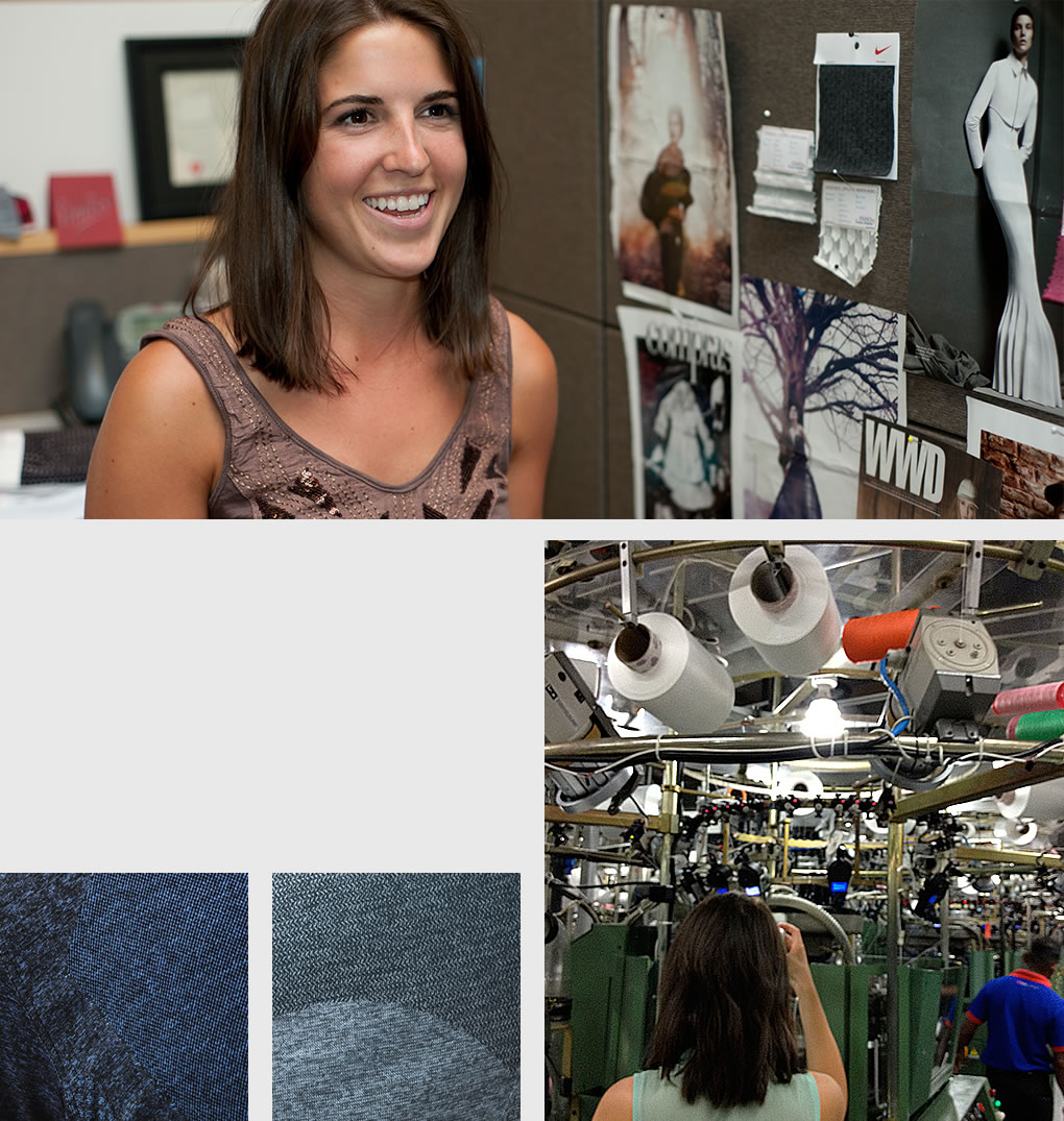 For each knit product, Waddle partners with designers, product managers, and Nike Category contacts to identify the right yarns to deliver the right fit, color and performance capabilities. She then works with the yarn mill to produce the right fiber for the job.